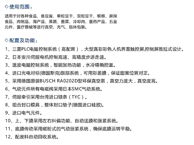 溫州瑞馳包裝設(shè)備有限公司是一家集研發(fā)、制造、銷(xiāo)售全自動(dòng)真空包裝機(jī)于一體的科技型企業(yè),公司全力打造的瑞馳真空包裝機(jī)在同行業(yè)中享有較高的榮譽(yù)和信譽(yù)。公司研發(fā)生產(chǎn)的RC-420、RC-520等系列的全自動(dòng)雙面拉伸膜真空包裝機(jī)、全自動(dòng)連續(xù)拉伸膜真空包裝機(jī)、全自動(dòng)連續(xù)拉伸硬盒真空充氣包裝機(jī)、辣條棒全自動(dòng)生產(chǎn)線(xiàn)等系列。并根據(jù)客戶(hù)需求配置自動(dòng)上料系統(tǒng)、輸送系統(tǒng),提升系統(tǒng)等形成成套的包裝流水線(xiàn)等系列產(chǎn)品。借助技術(shù)優(yōu)勢(shì)、憑借可靠的質(zhì)量、穩(wěn)定的性能和周到的售后服務(wù),使瑞馳產(chǎn)品遍布**各地,還遠(yuǎn)銷(xiāo)全球多個(gè)國(guó)家和地區(qū)。